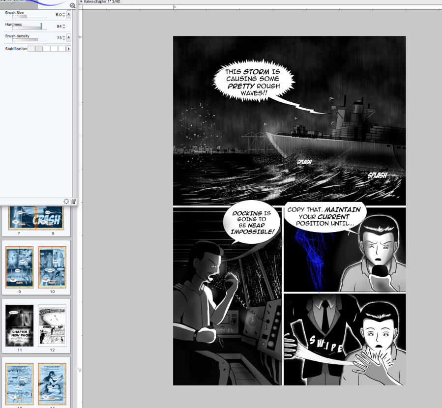 The first Kalwa graphic novel will be out this summer, and right now I’m busy trying to fine tune the old art for publication. I’m not planning on doing a full on re-draw, but I’m working to enhance the artwork new effects and some finer details before sending it to the printer. More updates to come as they are made.