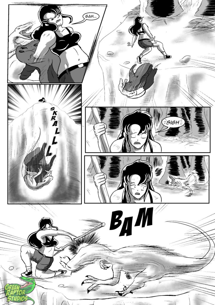 Chapter 11: Kalwa and the Raptors is in many ways my personal baby of a chapter. First of all it was a standalone chapter that didn’t have to play a large role in the overall Kalwa plot (though it is where Kalwa received her leg scars)second, it allowed me to embrace my great love and affection for dinosaurs and third,it was the perfect excuse to draw/write the dinosaur story I always wanted.