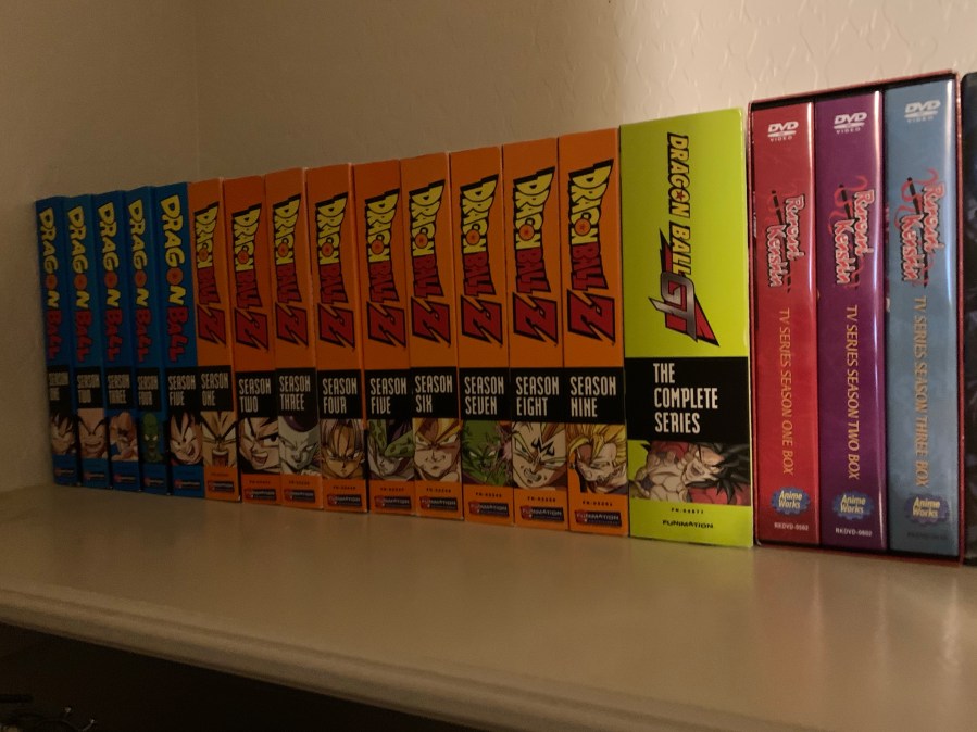 So my collection is arranged by two patterns , dvd to blu-ray and oldest anime to newest (or at least most nostalgic.) Dragon Ball is of course a favorite that everyone has probably watched, I own essentially the entire Dragon Ball series except for the new Super series which I’m not all that interested in unless it gets like a super pack similar to what you see below. Unlike probably everyone else in this world, I actually like the original Dragon Ball series over Z as I feel it’s more creative and has much better storytelling, though I confess Z has better characters and fights. Ruroni Kenshin is brand new to the collection, I initially watched it as a kid at a friends house and am growing quite fond of it. It’s also giving me some great story feeds for the upcoming Japanese arch!
