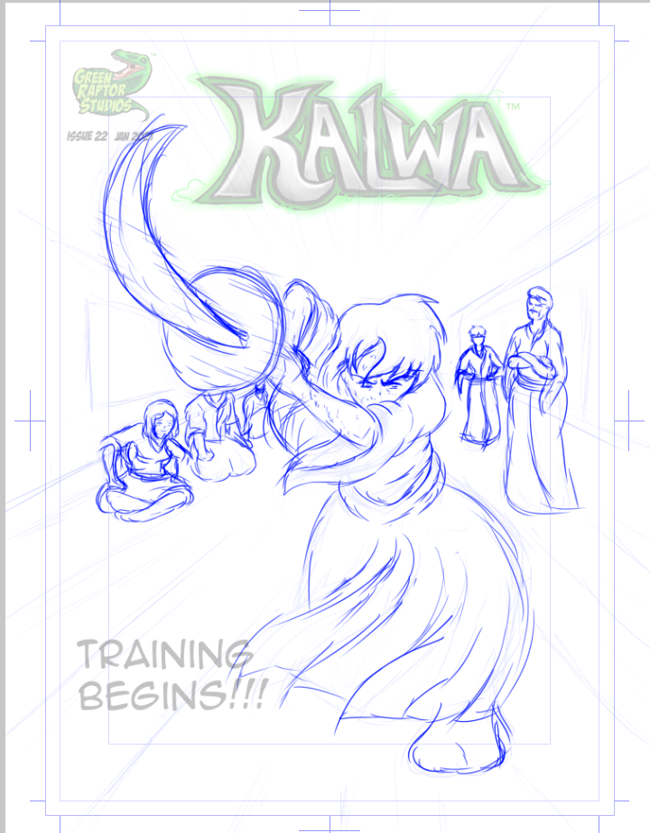 Probably to date one of the toughest covers I’ve worked on. I actually had the image of this cover for a while but I didn’t know it would be so difficult. I initially went back and forth on what the final pose would be. Initially I was going to have Kalwa doing the overhead Naginata move in which the weapon is raise overhead. However this made it difficult to position with the logo and I though it was kinda boring.