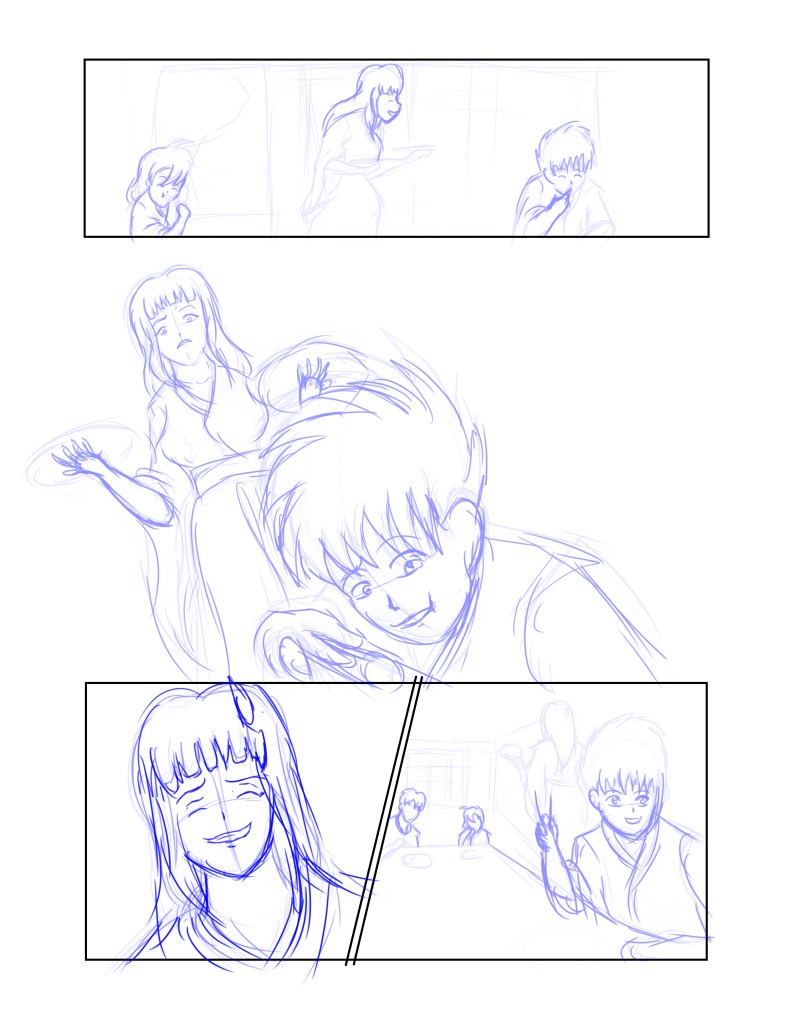 Giving yet another update on progress for chapter 24, and I wanted to start with an apology and and statement that… this has been a real horrible week. First of all, my co-writer has been mauled down with work, but he keeps giving updates that he is working on the script and will have it soon. Meanwhile I’ve been attempting to draw up some pages as a way to get a leg up, but it hasn’t been easy.