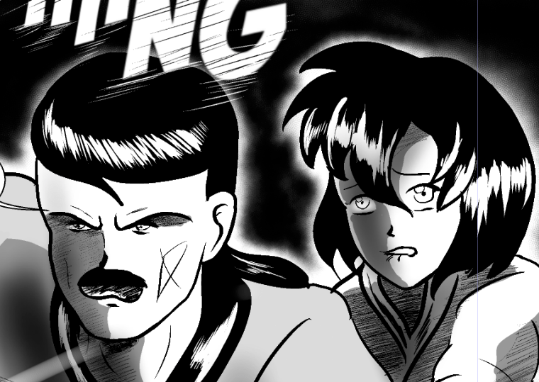 Finally a page update, the first of the year. I’ve been distracted these last few days with some life changes as well as some rearranging of toy displays around my fine working quarters. So here we are, as we continue with Kalwa’s one on one training with Hideyoshi. However danger is nearby, and Hideyoshi won’t take it laying down.