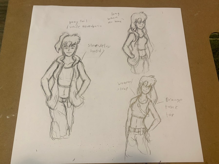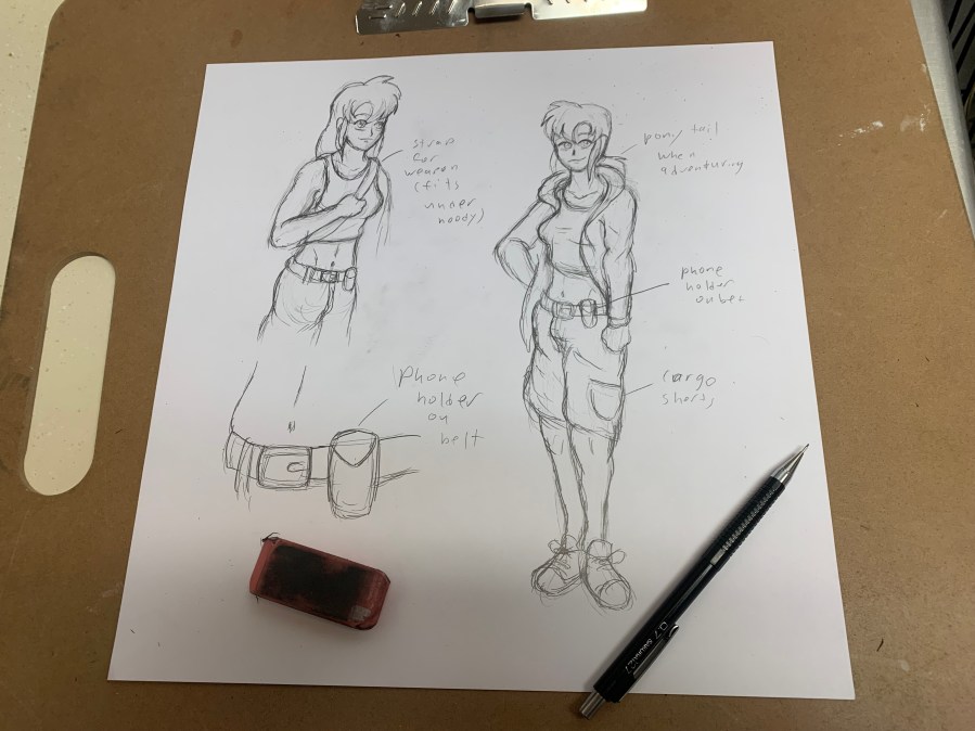 So I’m looking at an outfit mixup to make them more distinguishable from a certain distance. I still want to keep the hoodies since those are kinda a signature for my characters, but give them a little more skin so they can engage in combat and do some “better” adventuring. I don’t have it pictured here yet, but I’m planning on giving Zack some kind of utility belt/fanny pack or something. These two will soon be embarking on some more serious adventures and will need supplies, you’ll see why in about three more chapters.