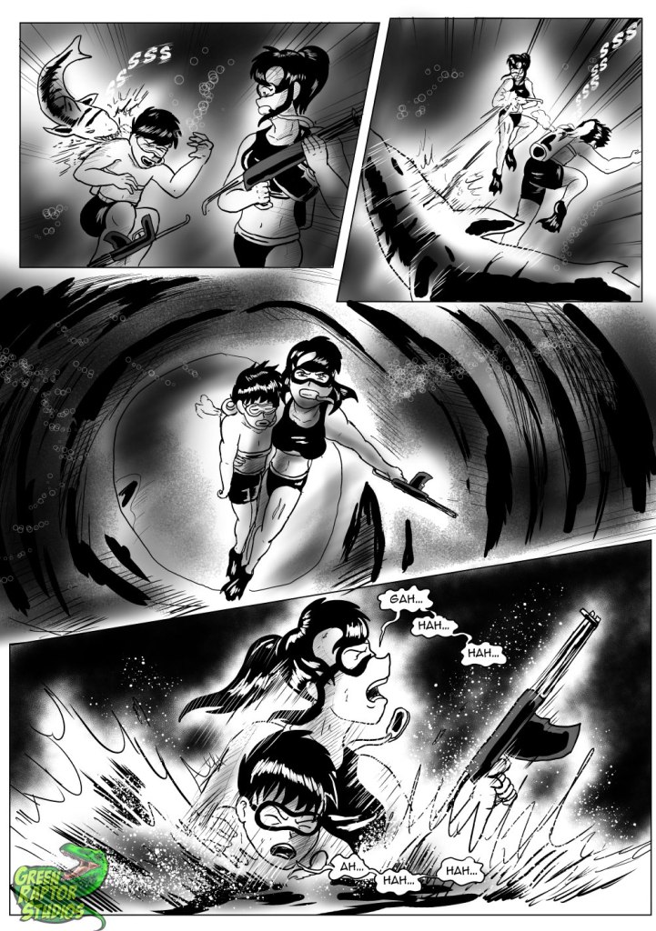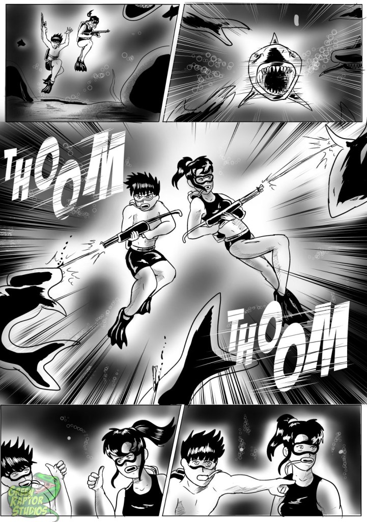 That’s right, we got a HUGE SIX PAGE update today. Kalwa’s ultimate battle with a Megalodon shark is up to read for FREE today. Down below are the first two pages. Click anyone one of them to go to the main chapter page to read the rest of today’s update.