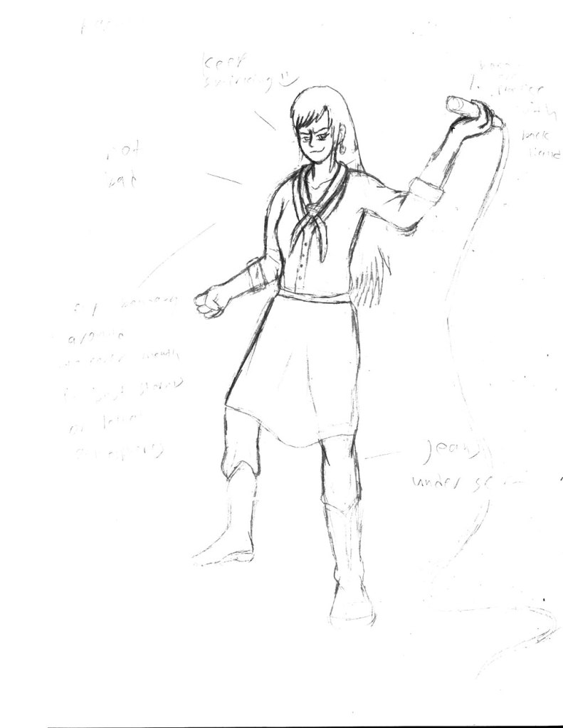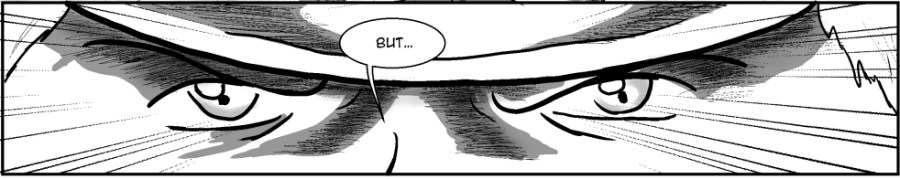 The x shaped scare on Hideyoshi’s face was actually an accident. In reality he was meant to have only a single slash scar, however when it came time to draw him in the comic, I mistook the cheek bone as a second mark and didn’t realize my mistake until about five pages of drawing him (as you can see by the sketch below). So hopefully Ruroni Kenshin fans don’t accuse me of stealing.