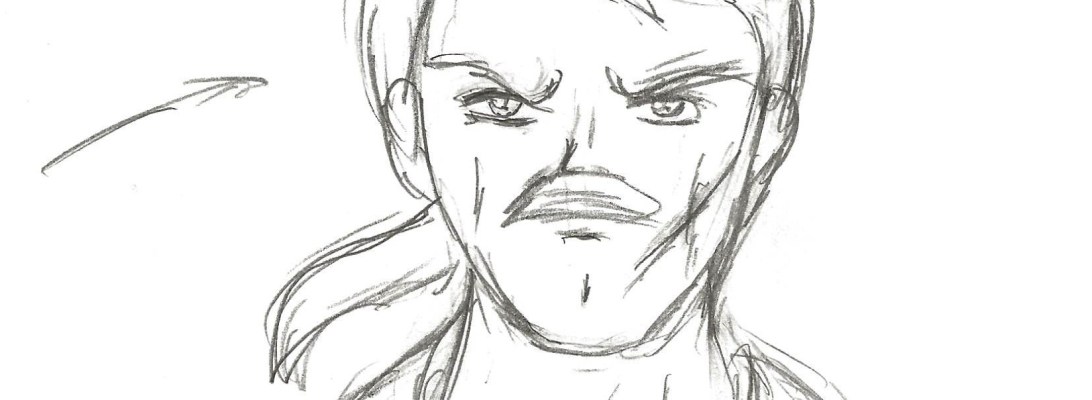 The x shaped scare on Hideyoshi’s face was actually an accident. In reality he was meant to have only a single slash scar, however when it came time to draw him in the comic, I mistook the cheek bone as a second mark and didn’t realize my mistake until about five pages of drawing him (as you can see by the sketch below). So hopefully Ruroni Kenshin fans don’t accuse me of stealing.