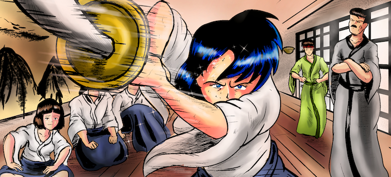 This technique can also be used to convey a certain sensation, and example can be found in this page from chapter 24, which at the time of this post is the latest chapter to finish. The use of sound effects coming from the following panel convey a sense of interruption and swiftness. This of course does pertain to real life and Kalwa’s own perspective, as realistically an strong opponent would move quickly on a weak one and hit them before they knew what would hit them. These are types of scenarios and feelings that I try to convey within my pages, and attempt to make the entire page on big illustration in itself rather than just being a collection of smaller illustrations. Something a single panel scroll down comic could never achieve.