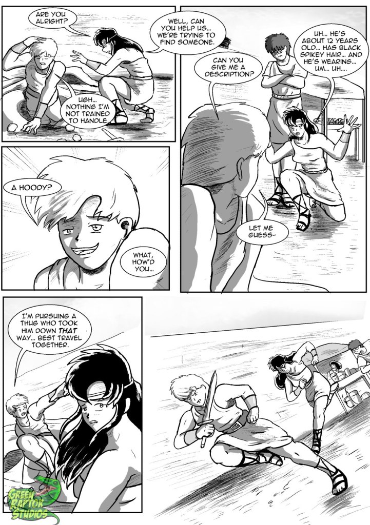 Possibly my favorite part of writing this chapter aside from the emotional moments featuring Kalwa and Zack are Zack’s interactions with Alexander. When writing these scenes I based them off interactions between “special needs” students and instructors. As an aspie myself, I know first hand how hard it might be to connect with people with special needs and that brute force and toughness doesn’t solve the issue. Every time I was drawing Zack and Alexander’s scenes I nearly cried myself, plus it was also a great way for people from the past to learn about the future and it played a roll in the overall search, see the pages below. As for the antagonists… we will get to them when we discuss chapter 15.