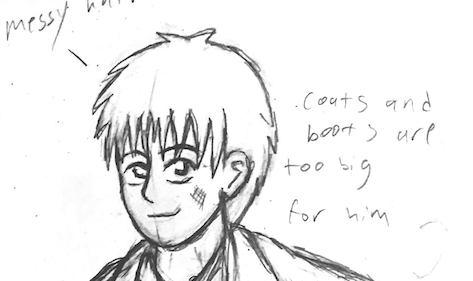 Jacob comes with a backstory of his own. My initial idea with Jacob was to have him look like a polite little boy, as he was meant to be Waylon’s little helper. His initial design can be seen on the right of his sketches. However I totally crazy design I came up with was Jacob wearing a coat and boots that were far too big for him. The idea behind this design is that Jacob admires Waylons and seeks to become like him. As such he wears these overly large boots and coat in hopes to grow into them one day. So if you ever wondered as to why his clothes were too big, that’s why.