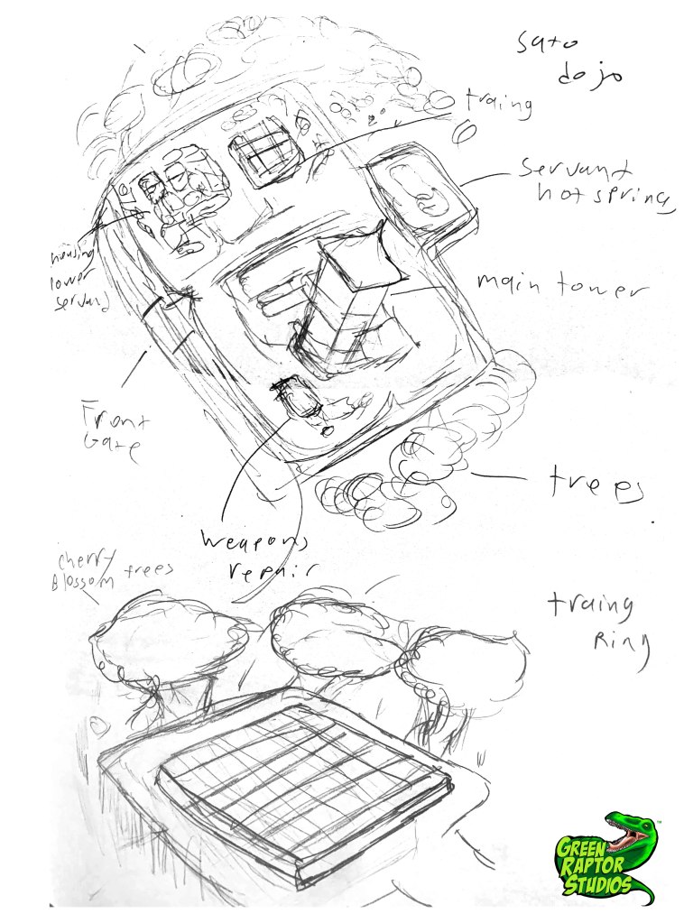 Sunday Sketch once again, this time it’s a location sketch. So this is a sketch area map of the Sato Dojo, of course the main setting for the Japanese arch. I always try to map out locations, though kinda have a bad habit of not double checking sketches when I start drawing them in the comic.