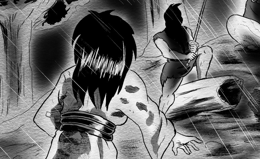 Unveiling the cover to chapter 26, one that might be a little unique. I finally decided to go with the blocking of the logo. This is because this chapter actually won’t feature much of Kalwa herself save for the opening. Rather this chapter focuses more on the trio you see here, namely on Zack who is seen the back.